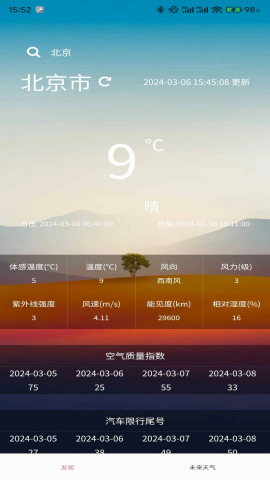 4、天气指数:提供空气质量、紫外线强度、着装指南等天气指数,为用户提供天气下的健康和生活指导。