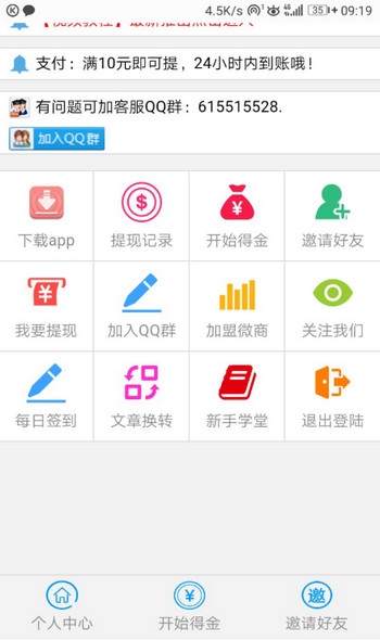 3、二级朋友拿提成,10元后可以兑现,24小时内收到。