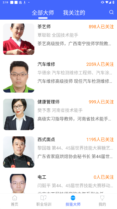 3、这里有很多大师,让很多学生可以轻松学习应用程序中大师提供的课程内容;