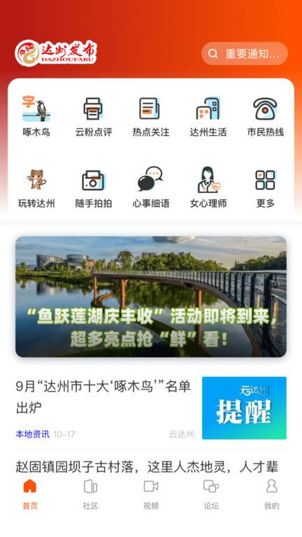 达州发布是一款非常优质的本地生活平台,免费提供大量优质的本地新闻资讯,包含的服务项目特别的丰富,用户线上可以自由阅读精彩的资讯信息,能够让用户第一时间知晓本地当中的性能去趣事,给用户的生活提供了非常大的便利。