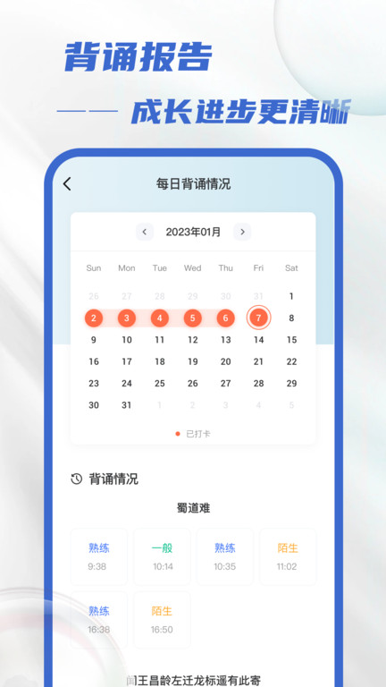 根据所选背诵内容,进行实时语音纠错,帮助检查,记录背诵细节;