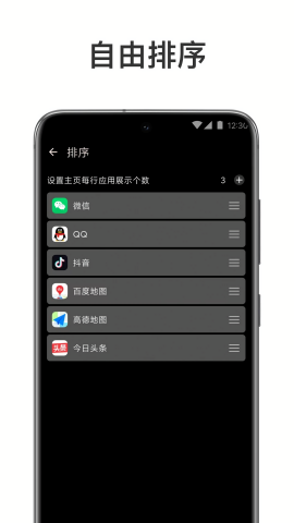 2、提供个性化界面设置,用户可以根据自己的喜好调整应用风格和排列顺序;