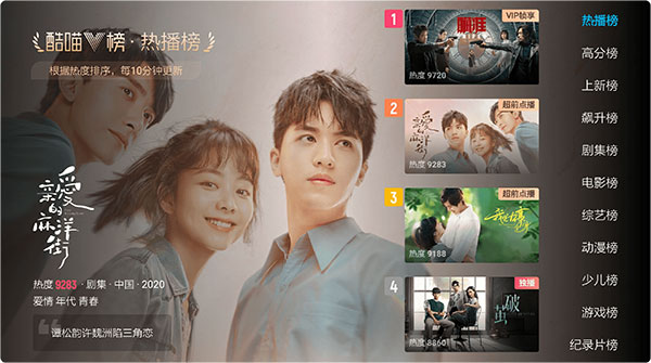 优酷TV在内容上与PC端、移动端打通。优酷TV可以播放海量超清剧集。