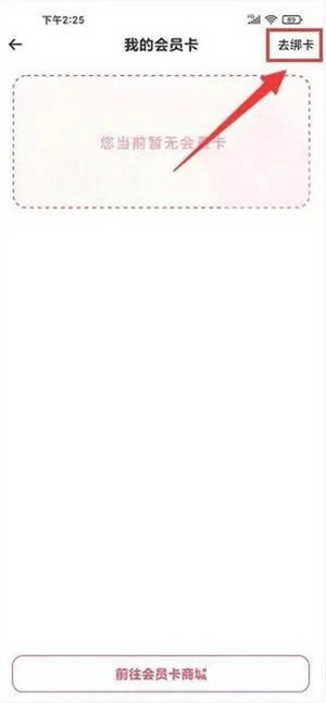 3、在我的会员卡页面,点击去绑卡按钮。