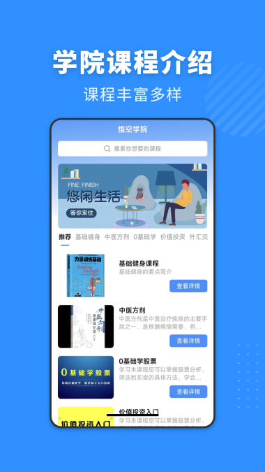 悟空学院是专为在线培训和学习设计的移动应