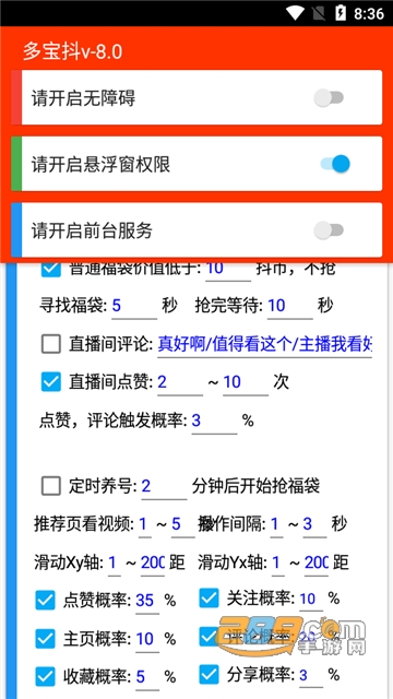 多宝抖是一款非常好用的自动抢福袋辅助软件。采用的都是非常先进的技术,而且抢福袋的速度都是非常快的,每个用户都可以在这里完美地进行设置,整个过程都非常的安全可靠,直接就可以有效地进行识别相关的红包信息,而且可以在最短的时间内进行抢夺。有效的提高了成功率,直接就可以统计所有的红包数据,兼容性都是非常强的,无论是微信还是支付宝等不同的红包都可以在线内进行操作。