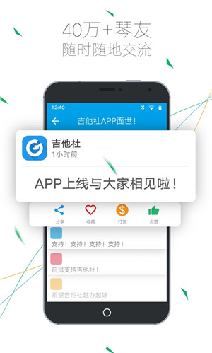 用户可以在社区板块中查看其他用户上传的帖子,也可以发布自己有关吉他的帖子进行分享