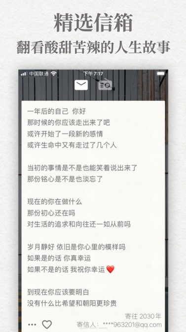 2、微信信件:通过微信公众号收到信,更加方便及时,没有邮箱,适用于给自己的信。