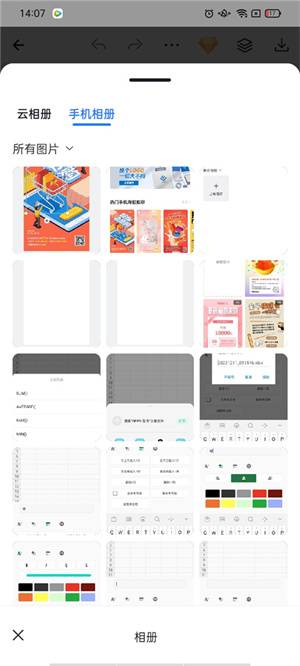 3、点击“手机相册”即可导入图片