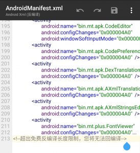 免费用户在反编译xml时,会有长度限制,并且速度也很慢,VIP用户无此限制。