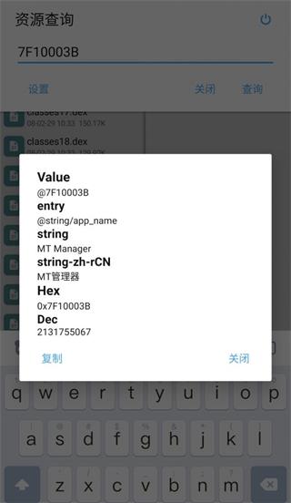 点击arsc文件后再选择「资源查询」即可看到一个悬浮搜索按钮,点击该按钮即可打开资源查询界面,搜索arsc文件内的相关内容。