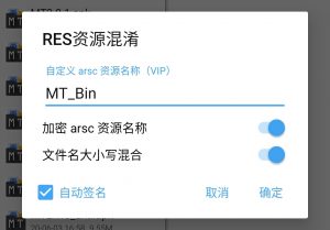 Res资源混淆功能为免费功能,但如果开启了「加密arsc资源名称」选项,混淆后的arsc文件内的资源名称都会变为「MT_Bin」,如果您是VIP用户,就可以自定义该名称。