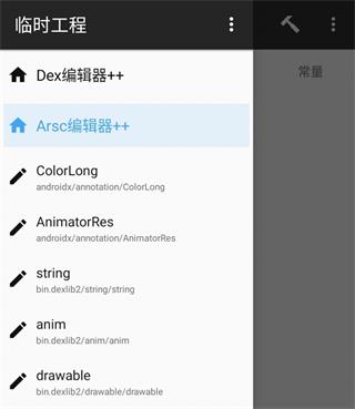 你还可以同时编辑dex文件和arsc文件,只需要将resources.arsc文件放在dex文件所在目录,然后启动dex编辑器++,即可在侧拉栏看到arsc编辑器++。