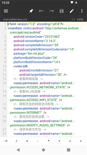 - 自带强大的文本编辑器,可以流畅编辑大文本文件,支持设置是否显示行号、开关自动换行、双指缩放字体大小、自动识别编码、代码语法高亮、自动缩进、正则搜索替换。