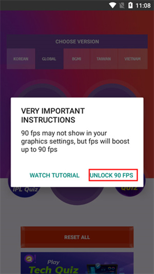 1) 要在运行低于 android 11 的设备上解锁 90 FPS,请允许权限并单击解锁 90 fps 按钮而已