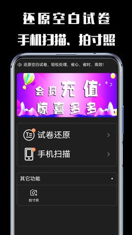 2、核心功能包括试卷的高清扫描和文本信息的自动提取。
