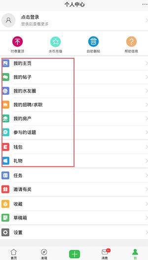 5、点开我的,可以查看我的主页、我的帖子、我的水友圈、我的招聘、我的房产等。