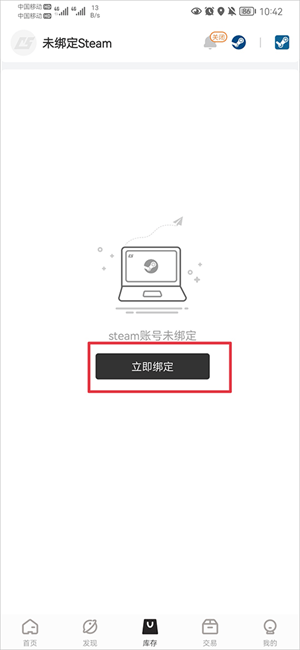 1、打开c5game app后,首先在库存界面中点击立即绑定