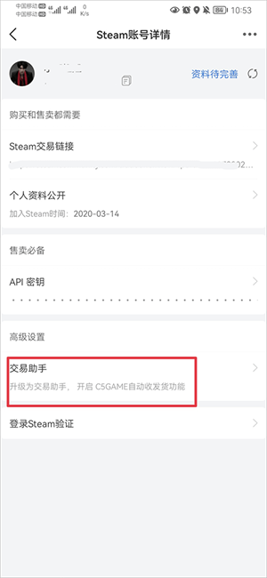 1、在steam账号详情界面中点击交易助手