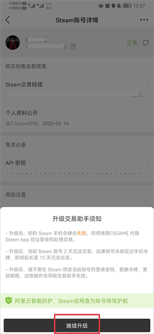 2、升级后,当前steam账号2天无法交易,如果账号未绑定过手机令牌,那将延长至15天无法交易