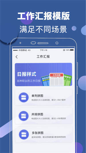 无限添加图片生成日报拼图,让工作更便捷;支持单排、双排、九宫格拼图。