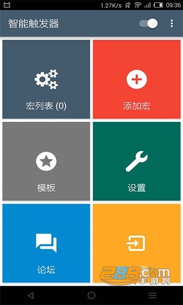 1、备设置所有宏的查看及编辑2、添加宏及相应开关方式的选择3、宏设置的预览模板4、MacroDroid的相关设置,包括编辑模式,变量,语音,系统日志等5、MacroDroid论坛,了解相关信息,可注册登录参与6、导入导出功能7、高级功能:MacroDroid Pro 无限制添加宏并删除所有广告。