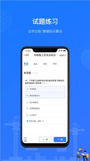 1、进入软件主页,在页面中选择自己学习的建筑科目;