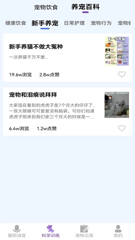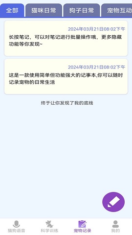 啵啵猫狗语音旨在为用户打造一款简单、便捷的宠物翻译app,包含猫狗语音、科学训练、宠物记录等多项功能。您可以了解宠物的生活习性以及各种表情的含义,有助于增进主人与宠物之间的关系,更好地沟通,各种情感需求、健康状况等信息。还拥有丰富的游戏,让你的宠物不再无聊。