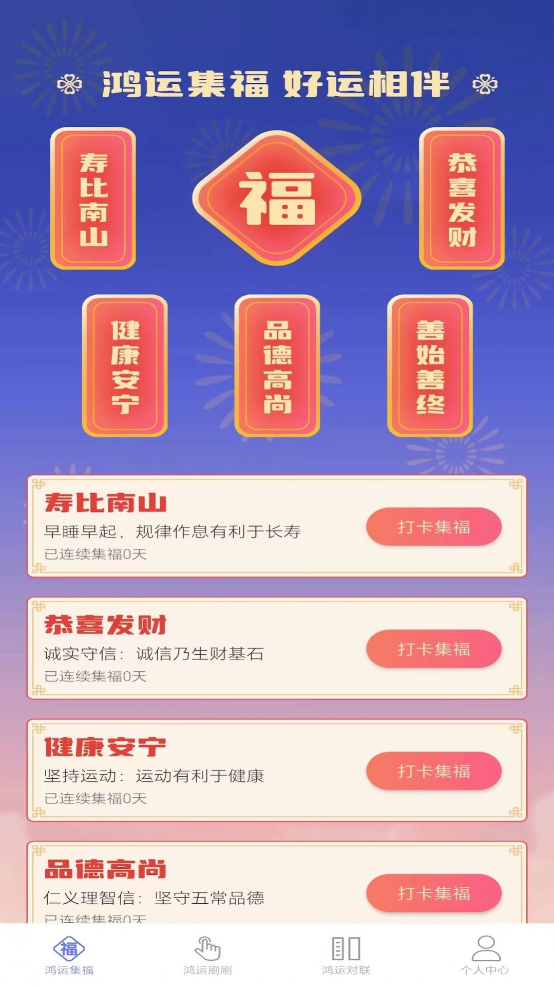 鸿运刷刷作为一款实时更新资讯,供大家查看的软件。拥有知识问答、传统习俗查询等,全部免费提供,只需一键刷新就能获取自己感兴趣的内容,非常详细,而且每个风俗下有对应的介绍,想看就看,还可以实时分享出去。还有免费的对联提供,方便大家阅读。清爽的布局,操作上简单,快来试试吧!