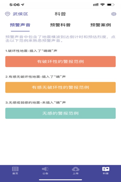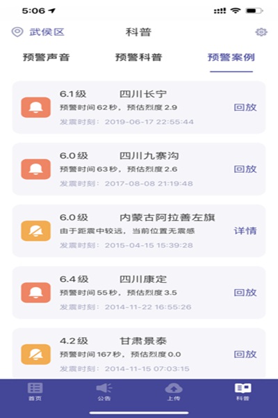 基于空间位置和多场地类型的峰值灾难动加速度特征周期和灾难动加速度响应谱,了解预警声音、灾难预警科学知识、强震预警案例,手机可以轻松检查,通过查询某一点附近的历史灾难记录,很容易知道该点是否为高灾难带。