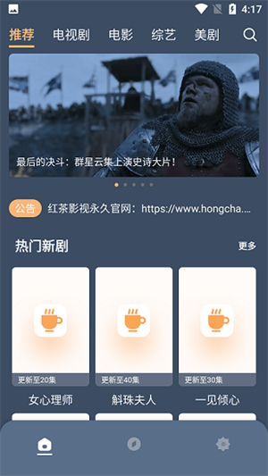 首先,红茶影视app自带多个频道,涵盖了电视剧、电影、综艺、美剧、韩剧、动漫等多种类型的影视内容。这使得用户可以根据自己的喜好和需求,轻松找到心仪的影视剧。无论是热门的国产剧、经典的电影,还是国外的精彩剧集,都能在这里找到,满足用户的不同观影需求。
