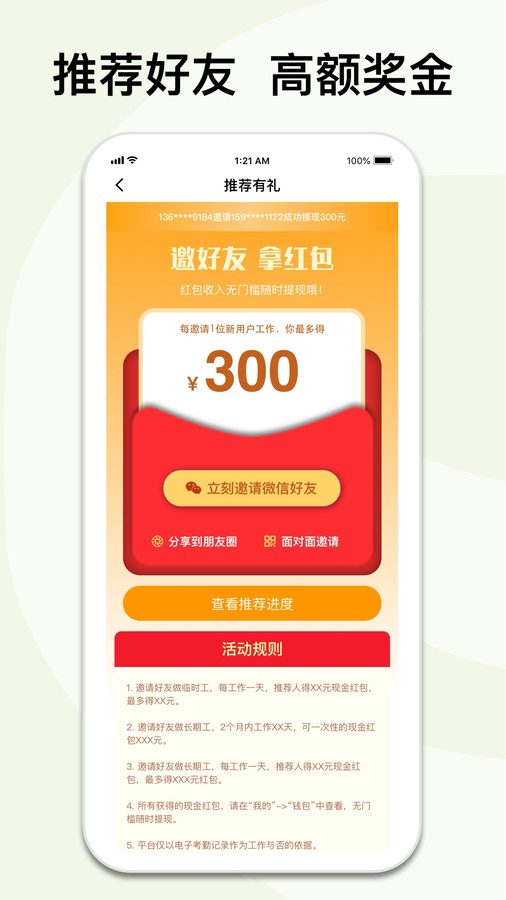 薪资即时发放至个人账户,您可以随时进行提现操作,作为兼职者的首选神器当之无愧。