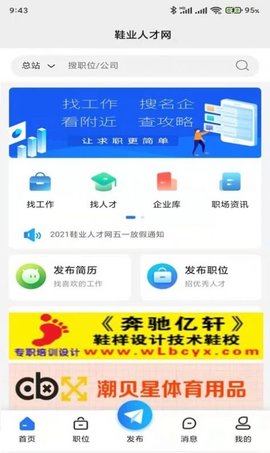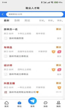 1、发布鞋业岗位招聘信息,包括全职、兼职、实习等类型。