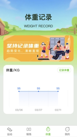 1、软件支持实时记录运动过程中的体重变化,方便用户随时了解自己的减重情况。