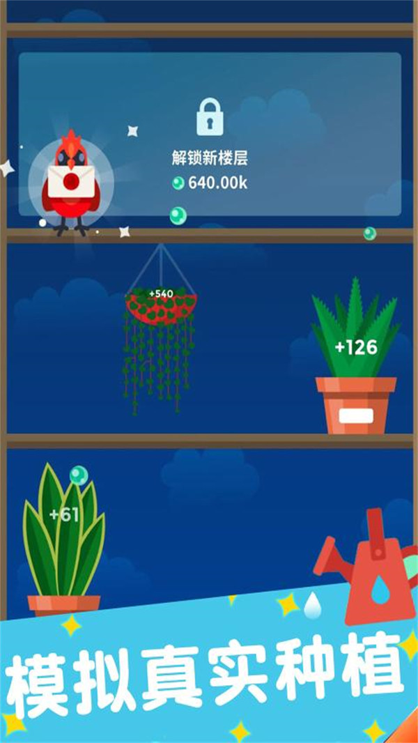 轻松简单放置手游玩法,收集更多的盆栽开启更多的场景,开放更多放置室!