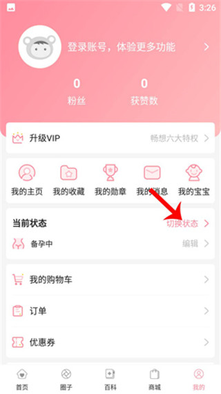 1、下载打开怀孕管家app,在进入之前就可选择当前状态:备孕,怀孕中,宝宝已出生。