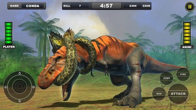 2.公平的竞技作战都是需要玩家进行解锁竞技,就像这个愤怒的蟒蛇与恐龙战斗一样,大蛇总是很饿;