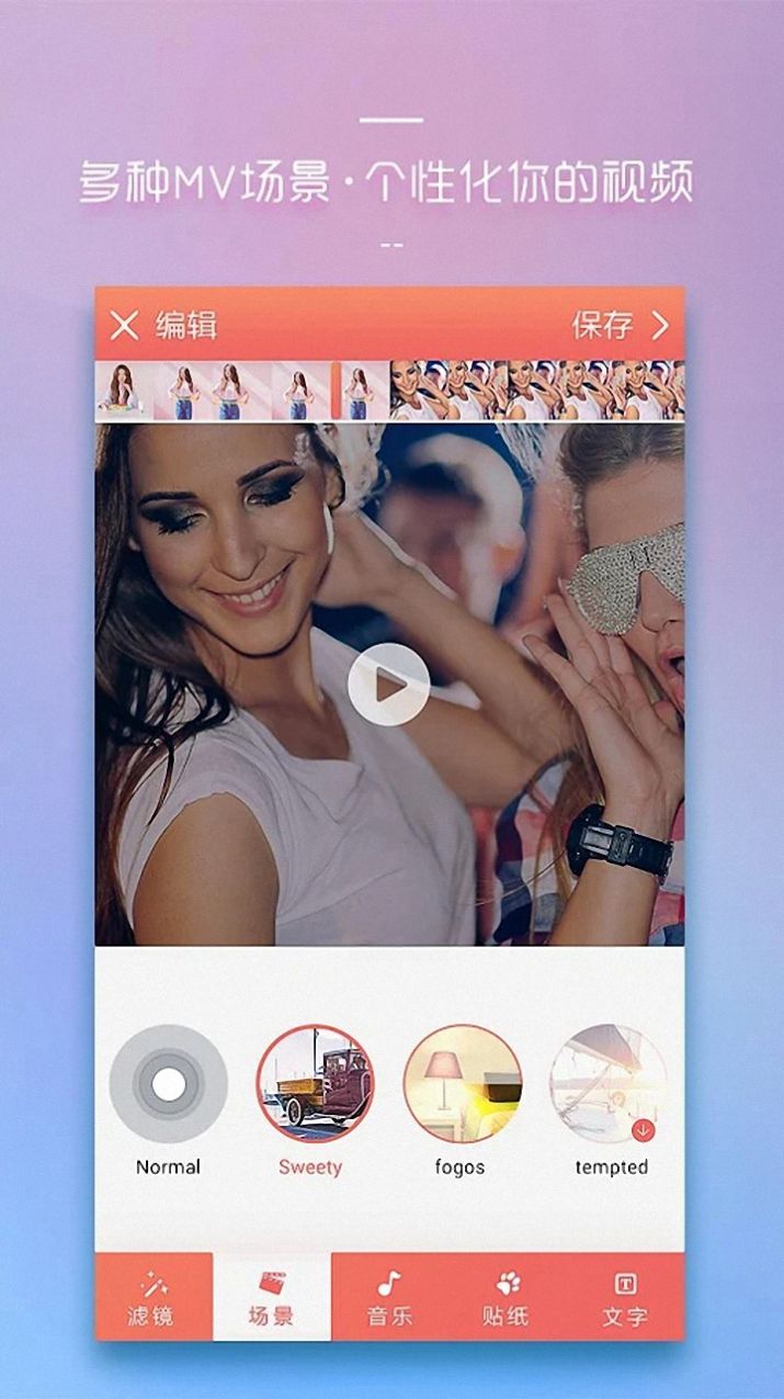 1、多个MV场景,个性化您的视频,更多免费贴纸下载,让您的视频更有趣。