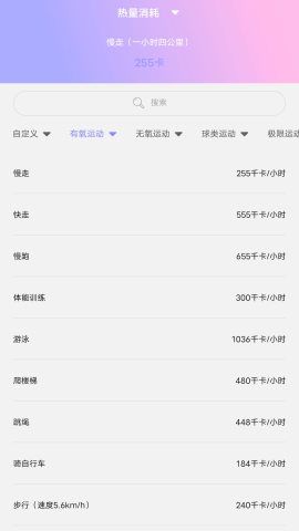 4、根据运动项目换算消耗,明确运动效果。