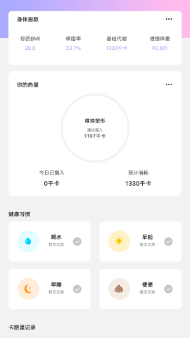 3、自动计算卡路里摄入与消耗,实时更新。