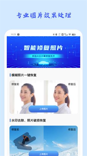 专业级别的图片处理效果,以智能修复照片为主要模式,迅速完成。