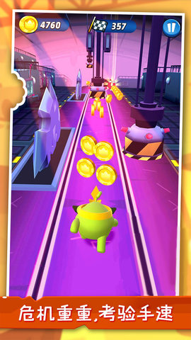 不断跳跃躲避各种障碍物和陷阱,还可以收集沿途的金币,可以用来开启更多的道具,帮助自己轻松过关,