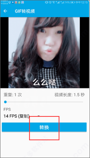 4、在打开的“GIF转视频”界面中,点击“转换”按钮