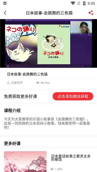 5、点击随意一个视频,我们可以进行视频日语学习。