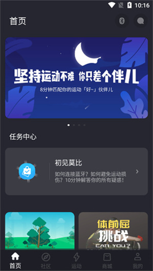 有些用户连接不上蓝牙是因为没有在app中完成相关任务,只有完成任务后才在开启蓝牙才能将它正常连接上,用户可以在刚刚登录应用后可以看到首页的初见莫比选项,这个选项可以告诉用户怎么连接蓝牙