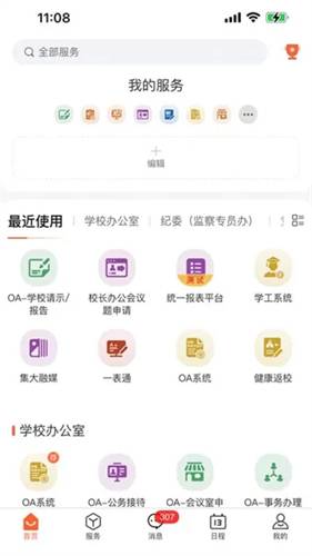 1)应用中心集成了各类校园应用,帮助用户快速访问各种校园服务,方便实现各种需求。