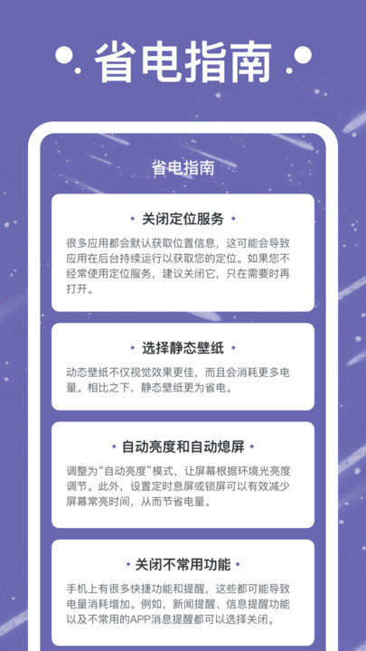流星充电,一款值得各位来haolingcc下载的充电管理软件,可以对电池进行很好的优化,手机必备的工具之一,在线的去进行检测电池信息情况,给予各位相信的分析信息,一键的去查询了解,查看自己的手机待机时间也是可以的,喜欢的话就来本站来haolingcc下载试试吧。