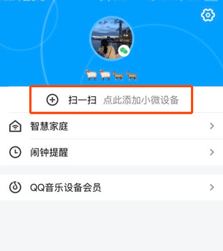 请确保您的小微设备已经通电,并连上Wi-Fi网络。打开手机上的 “腾讯云小微” App登录成功后,点击“扫描绑定设备”,扫描设备的二维码