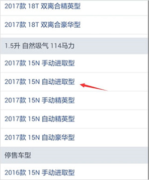 6、选择完相应的品牌车型后,继续选择该车型的进行对比;
