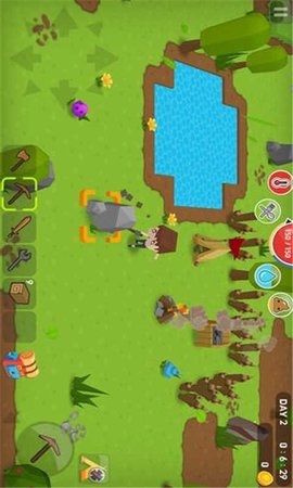 4.捕猎动物可以获得食物,搜集木材,石材可以建造不同的建筑物。